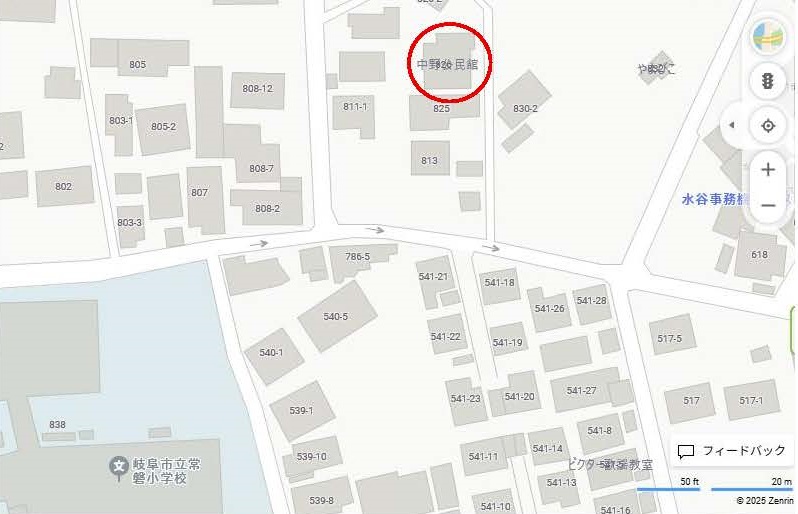 中野公民館は、岐阜市立常磐小学校の近くにあり、田畑が点在する静かな住宅地にあります。